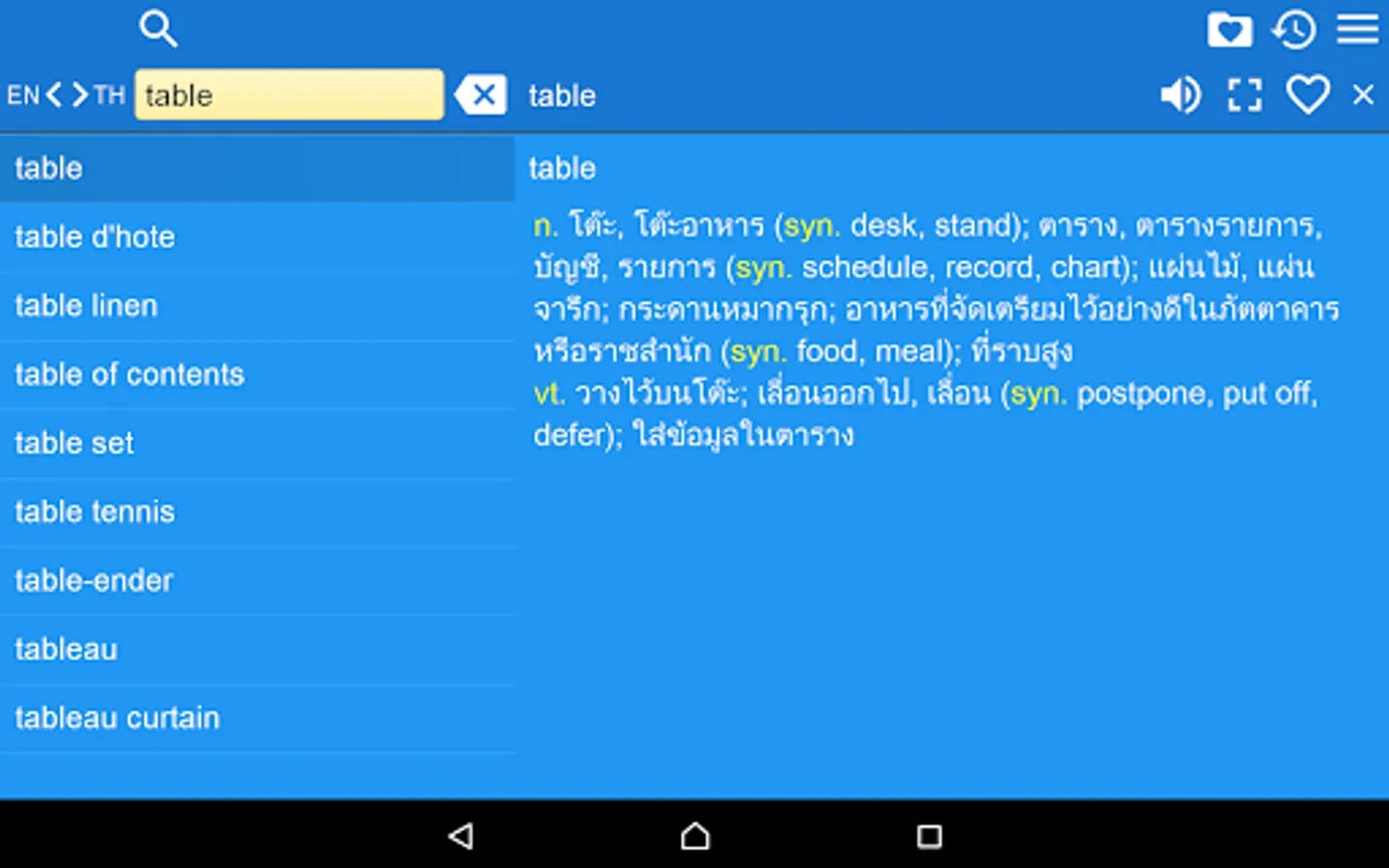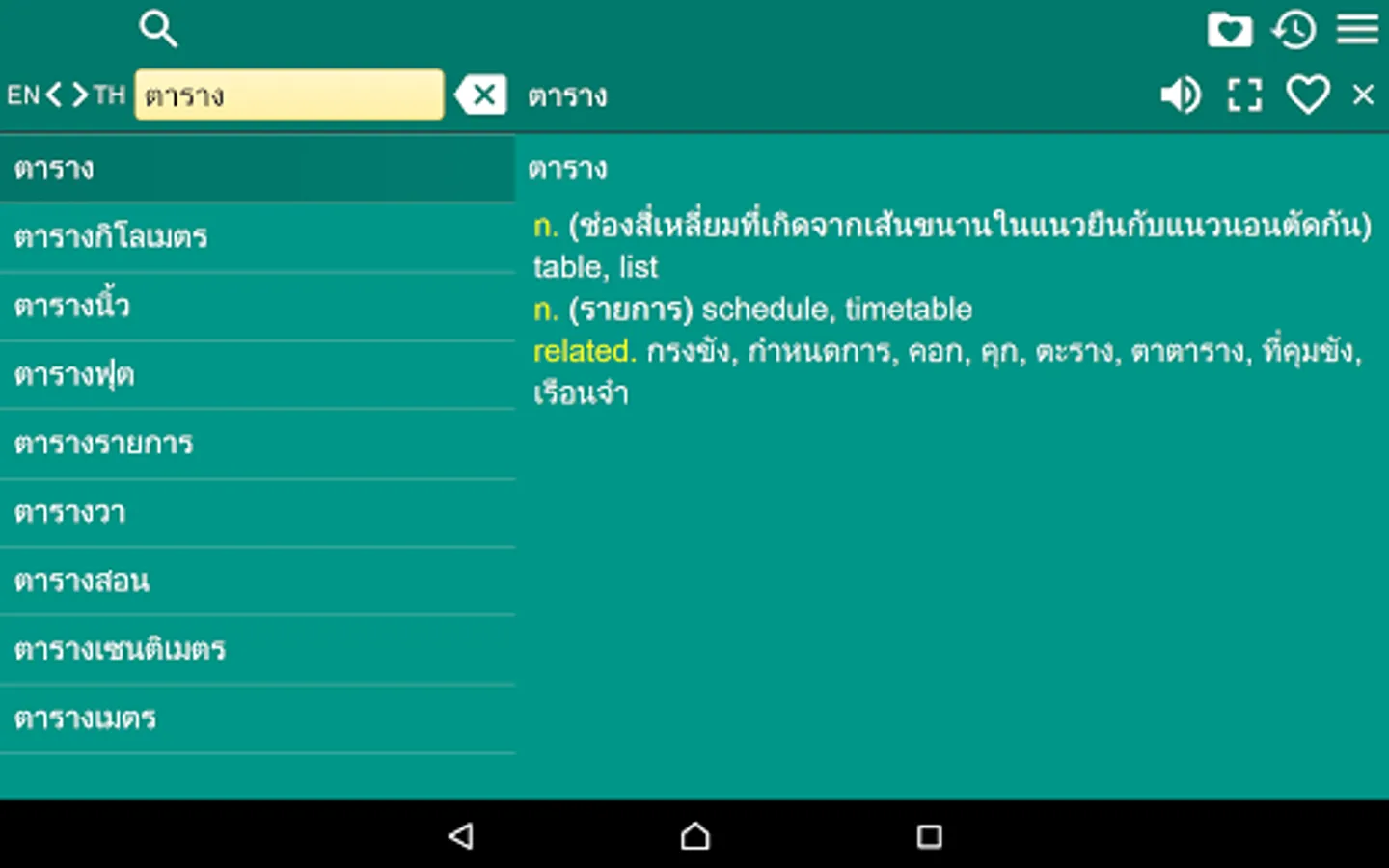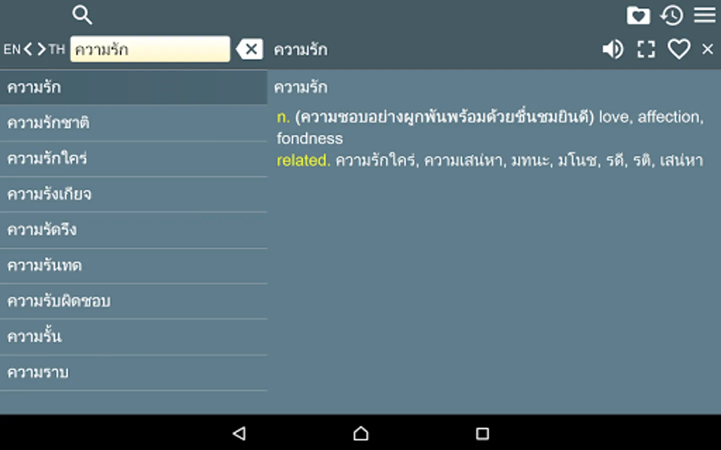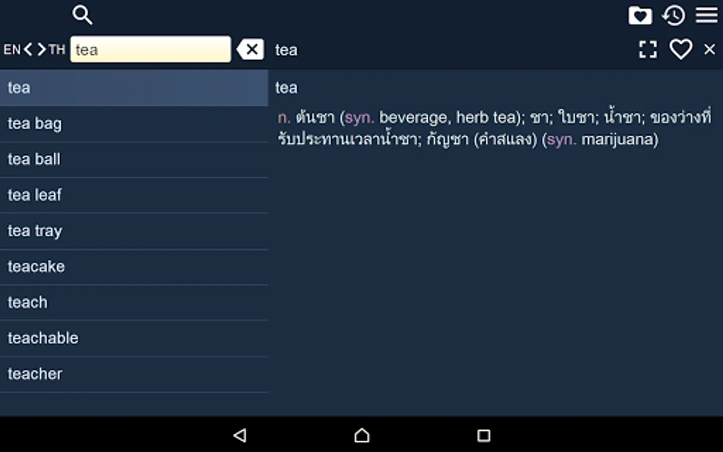 2. Favorites – you are able to add words to favorites list by clicking the “star” icon.