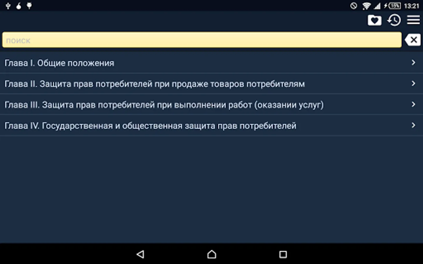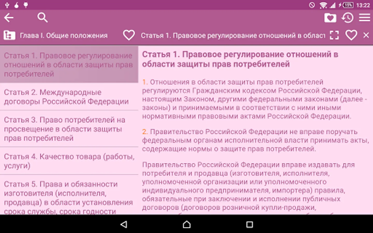 Это Справочник - Закон о защите прав потребителя РФ (России, Российской Федерации). Справочник работает в режиме ОФФЛАЙН и не требует интернет-соединения для работы.