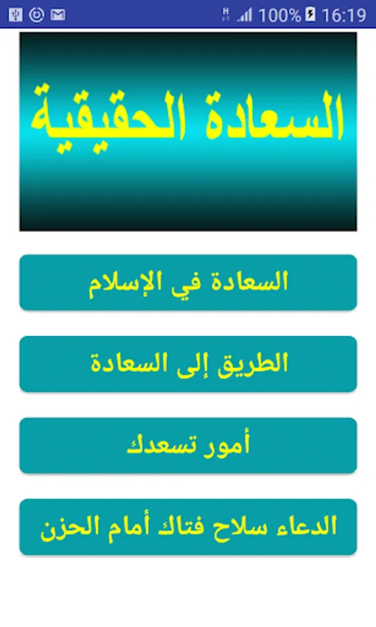 We address in this application to the subject of the true happiness of the human being and where there for him and the way to achieve them? Is true happiness in this world or in the Hereafter or is there happiness and other worldly Okhroah? What makes a man happy? And how sad it goes?