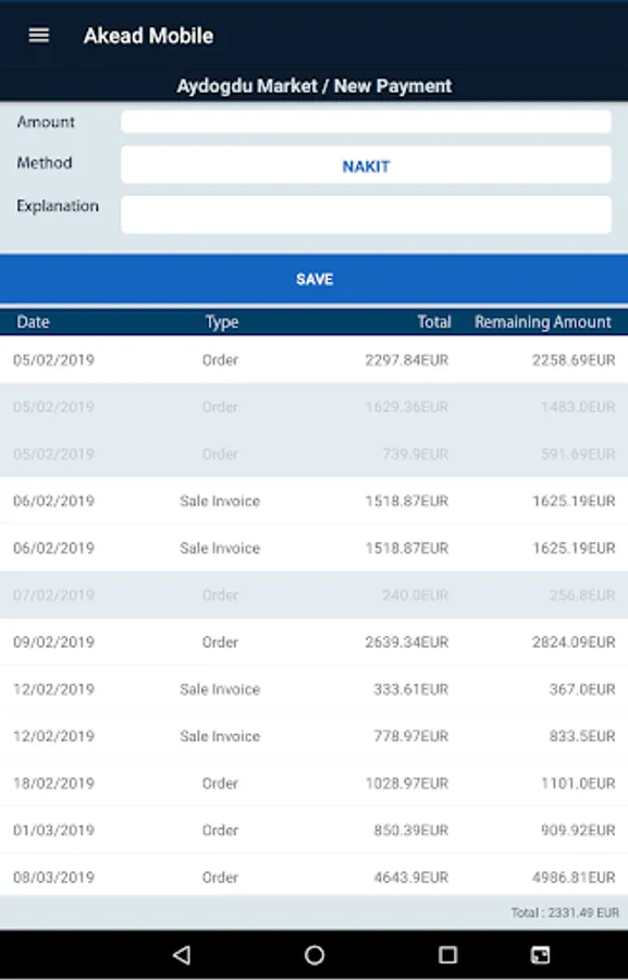 Moreover, you can receive an order and make out an invoice with Akead Mobile Plus Module. You can send these documents by mail to your customer or you can print them out. Also you can save the payments that you receive with the Create Payment page.