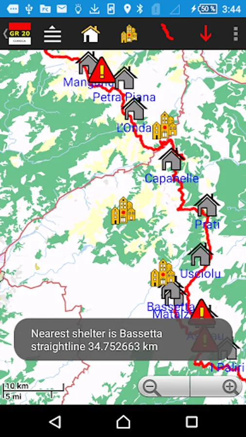 - to see and use the GR20 map (Google) when connection WIFI or 3G is available