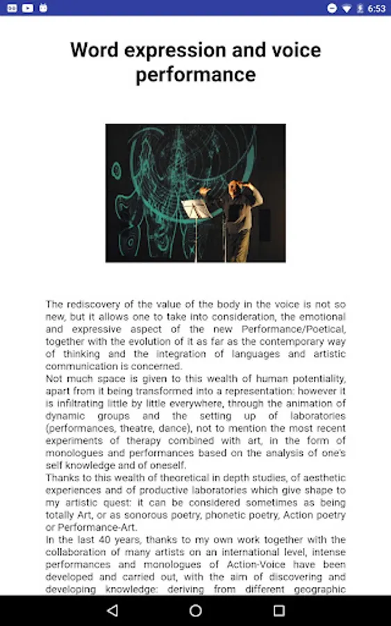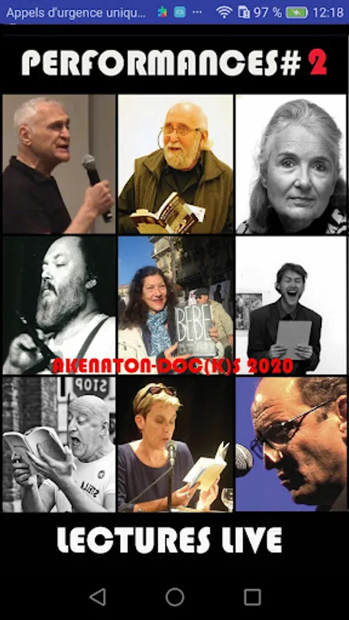 Based on the archives of the Doc(K)S Experimental Poetry Review this application, the second of its kind, presents videos of readings/performances of 9 international poets (A.Spatola, C.Tarkos, M.Métail, F. Guétat-Liviani, J. Rothenberg, J.Giorno, C. Pennequin, N. Frangione, N. Agostini) whose work is based on voice and text more than on action and gesture.