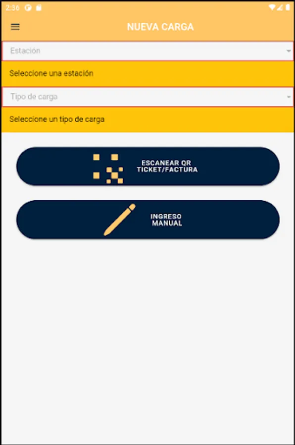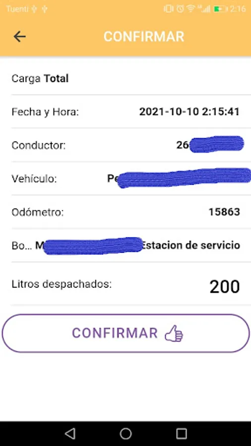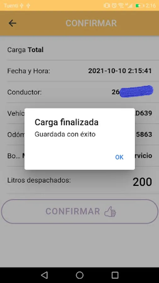 Application that allows the registration of fuel loads of vehicle drivers registered in app.akercontrol.com