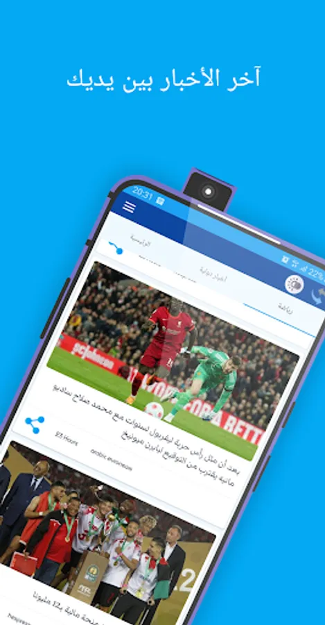 المقالات الإخبارية المعروضة مرتبة في عدة فئات: المغرب, دولية, مدن, إقتصاد, رياضة, علوم و تكنولوجيا, فن و ثقافة, فيديو