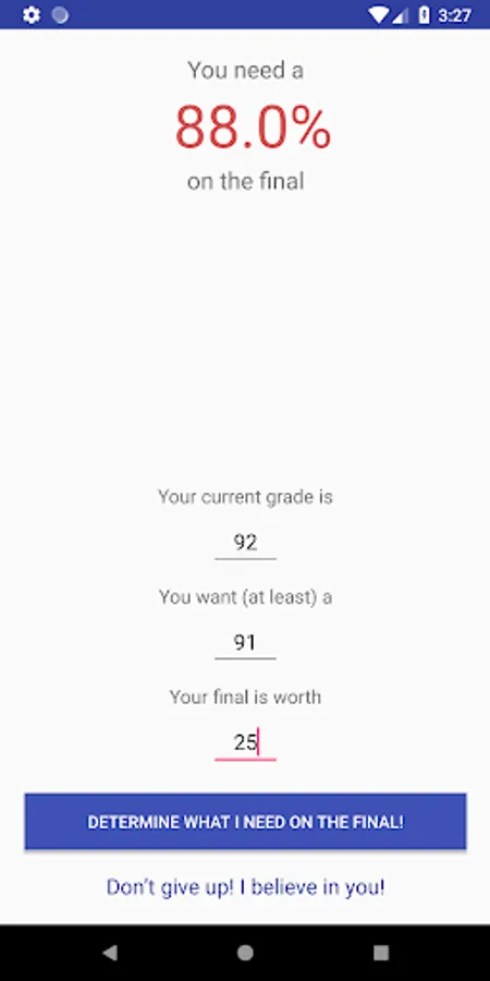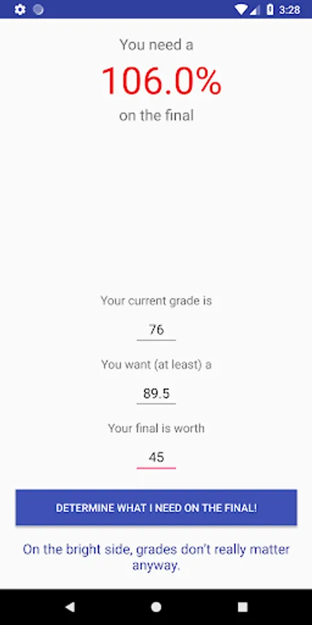This tool will determine what grade (percentage) you need on your final exam in order to get a certain grade in a class.