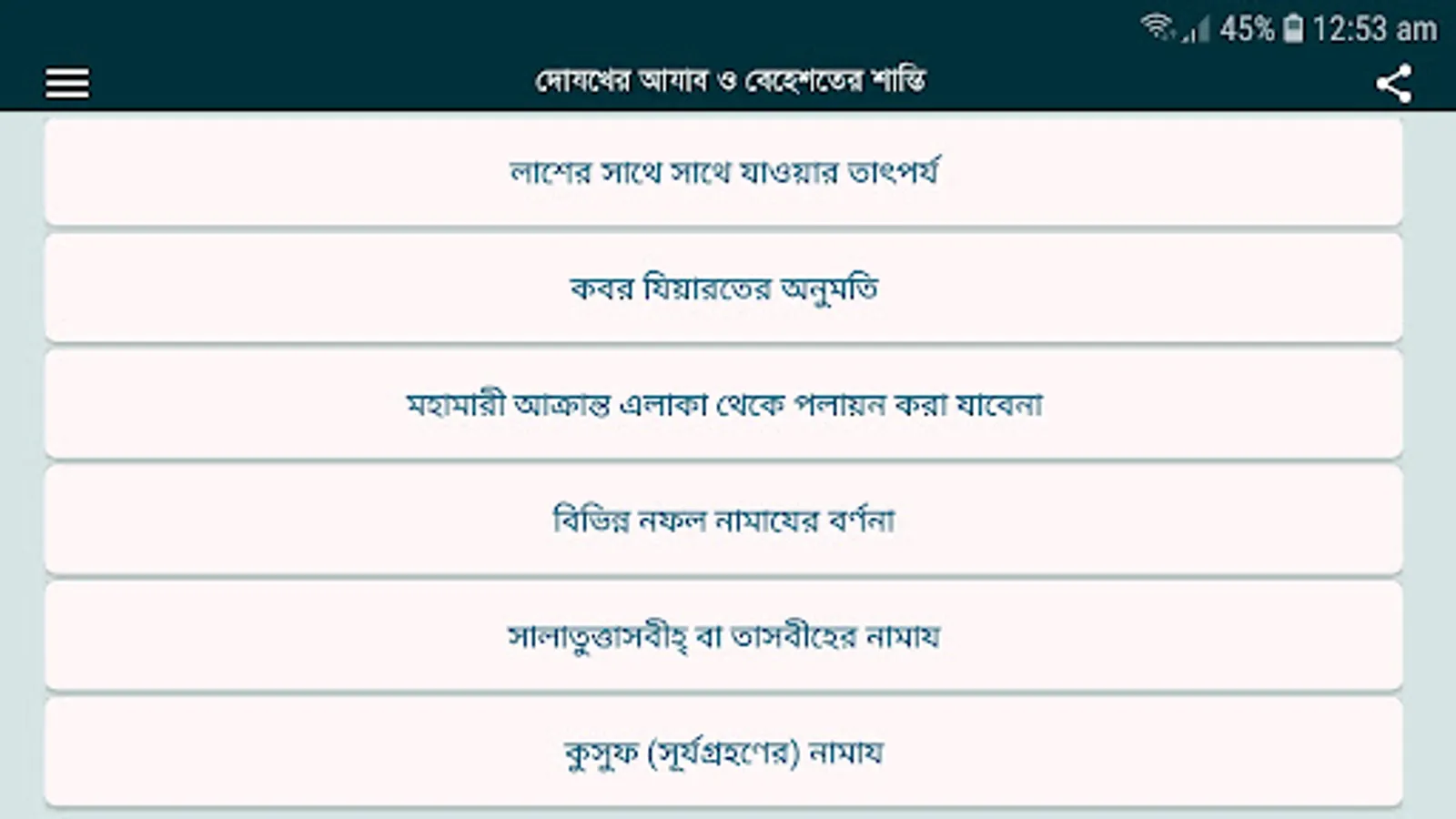 The punishment of the grave and the peace of heaven are discussed through this book. How difficult the punishment of the grave can be and you can learn about peace very easily through our apps.