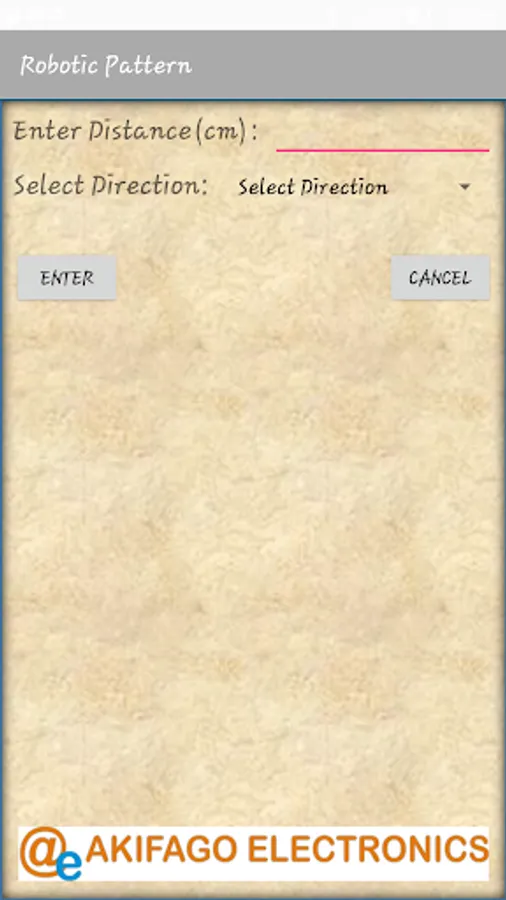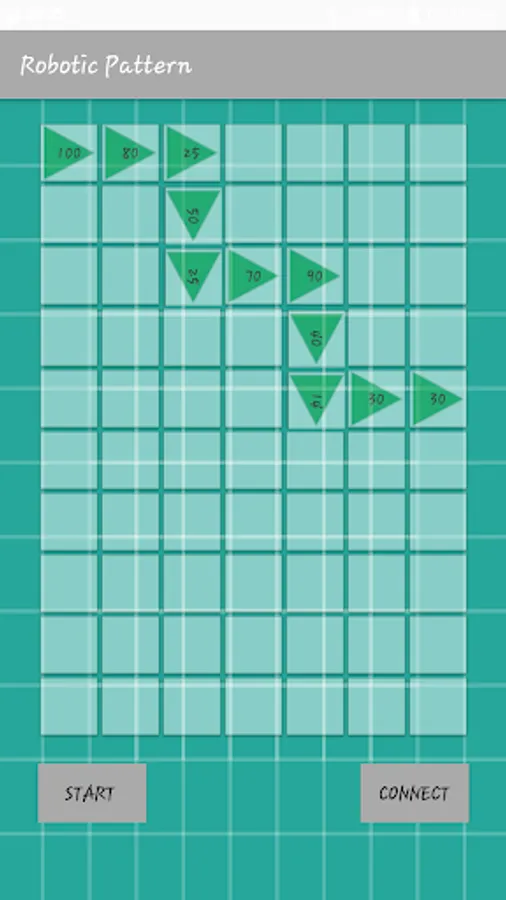 The Robotic Pattern Control Application works using Assigned Distances and Directions. The User after placing the desired patterns, simply connects the Mobile Phone to the Robotic System Via Bluetooth Technology. Once connected, the Start Button is then Clicked to start the control process Automatically. To Remove any Placed Distance/Direction, Simply Tap on the view to Remove.
