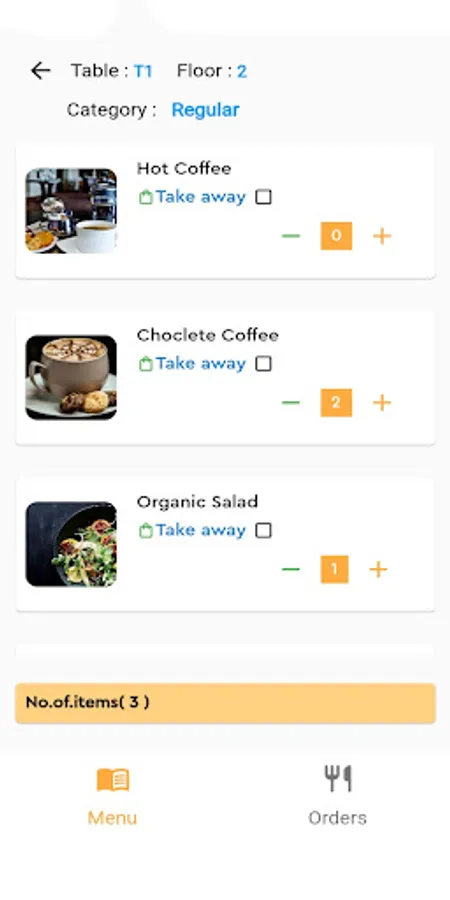 Mobile App for taking food orders at Table, at the same time order can be placed at the counter for take away. As Order picked, information will be shared to the kitchen via chef login or printer configuration.