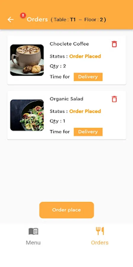 2. Waiter User - He/She can pick the order at the table and even can cancel the order.
