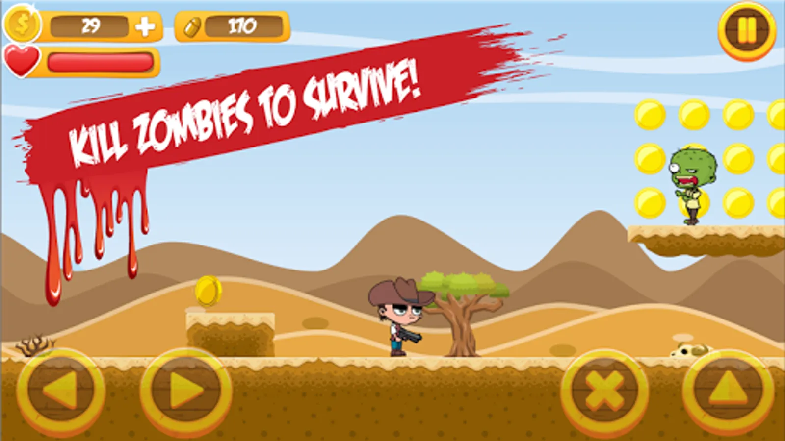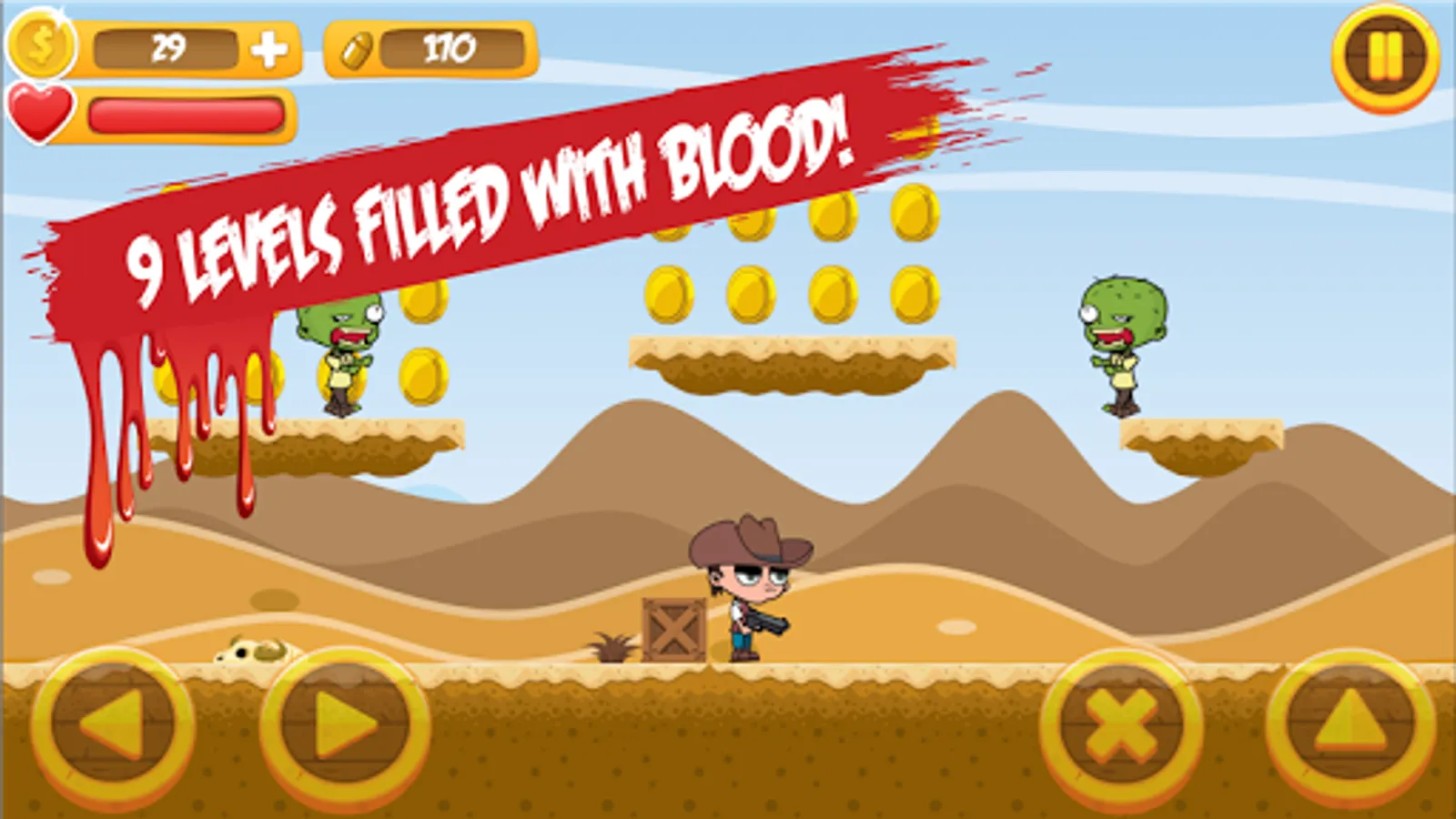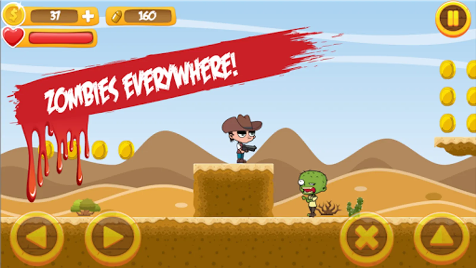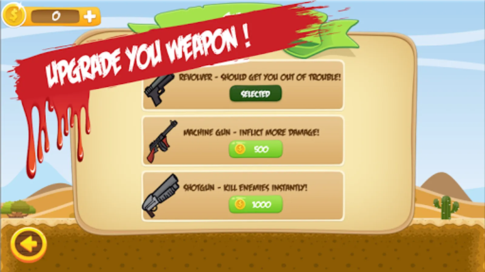 Shoot zombies and collect more coins. That's the only way to get a bigger and better gun in this zombie and cowboy games! Why not buy a machine gun or a shotgun? Shooting zombies as never been more fun...
