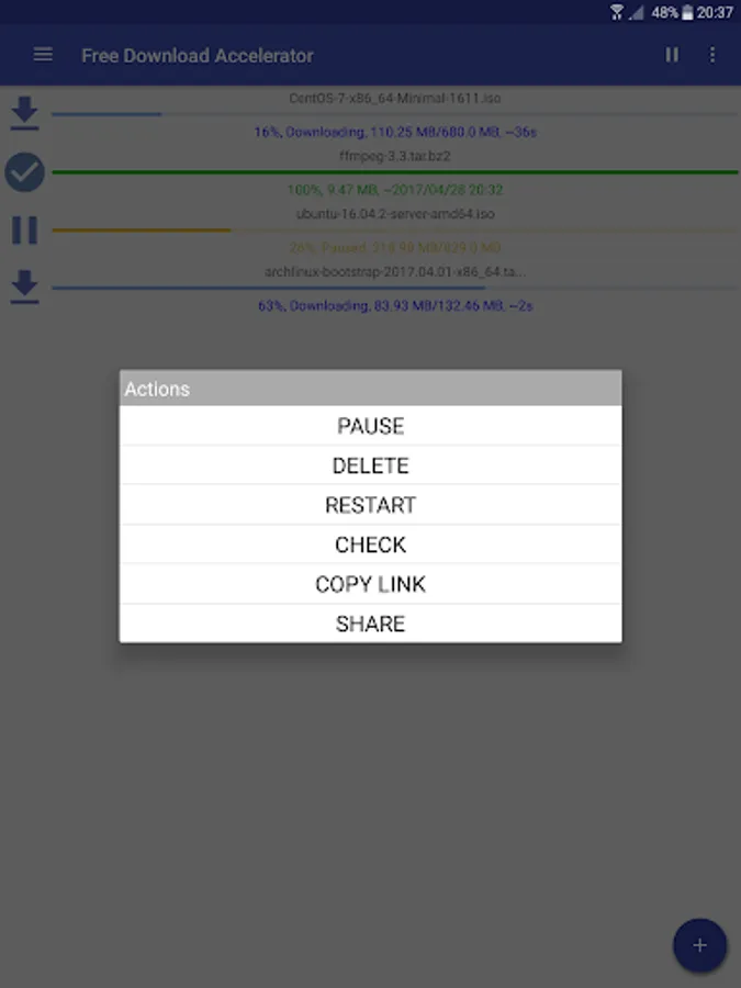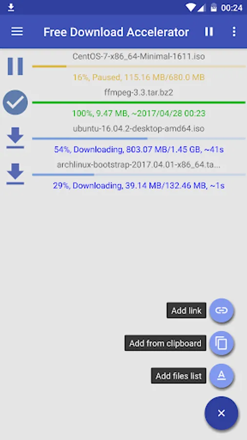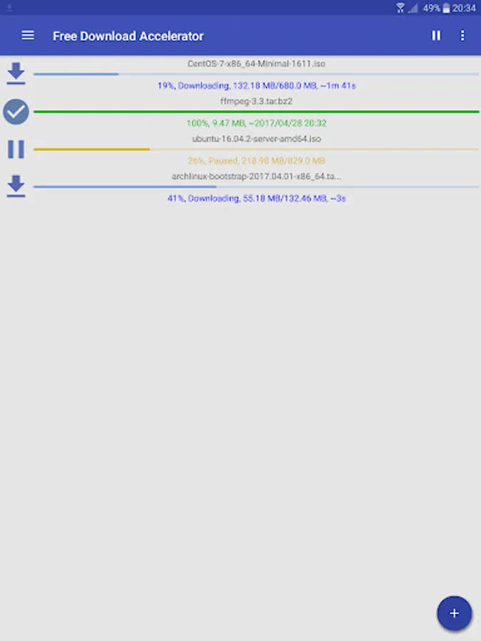 Free Download Accelerator for Android is a full-featured download manager and client. Using the multi connections download protocol it’s possible to split the files to download in multiple parts, so that you can boost the download speed up to 10 times.
