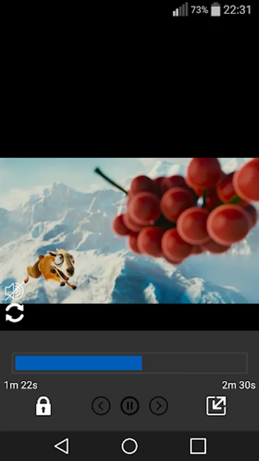 - touch the screen to increase/decrease device volume or brightness during reproduction and use the other widgets to go forward or back in the reproduction of the video, lock the screen, pause/resume or start the reproduction of another multimedia file;