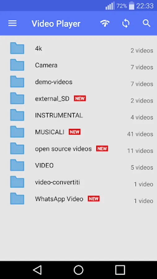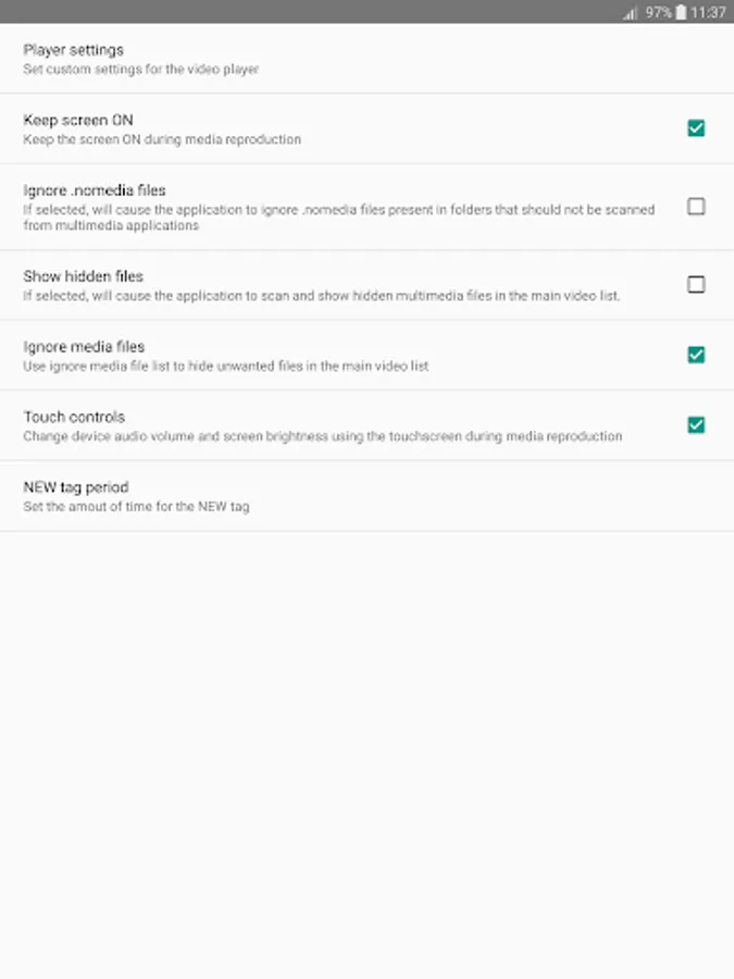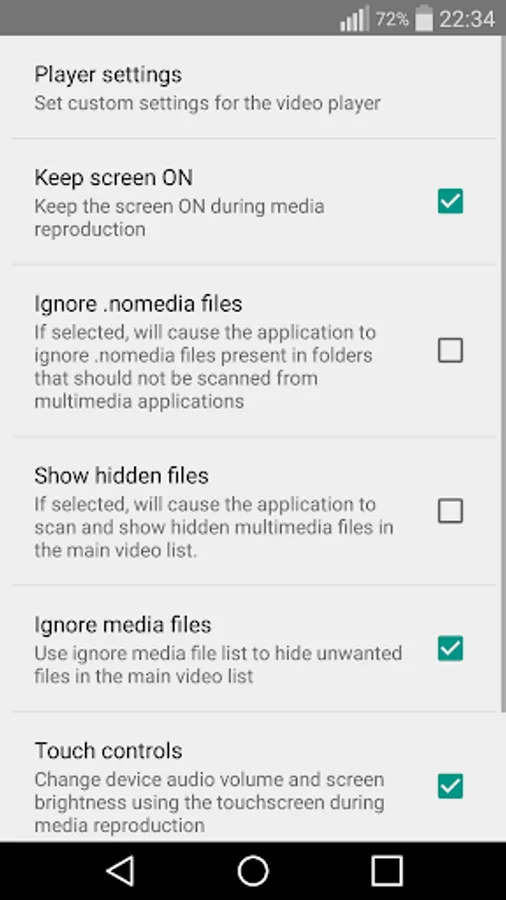 - high level of personalization, you can ignore one or more files in the main video list or whole multimedia folders and you can change these features using the SETTINGS activity;