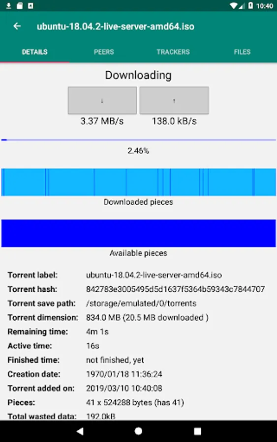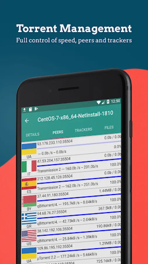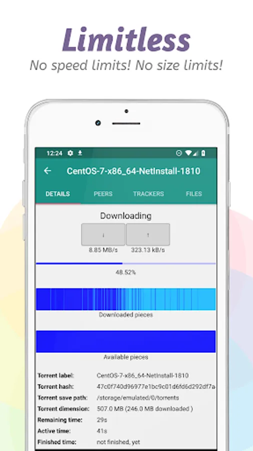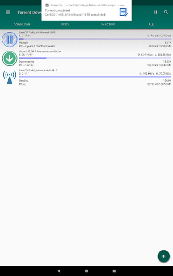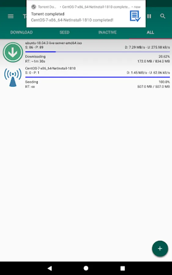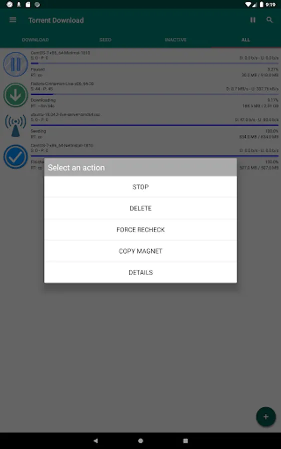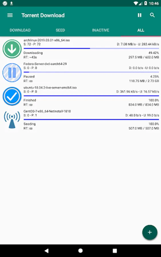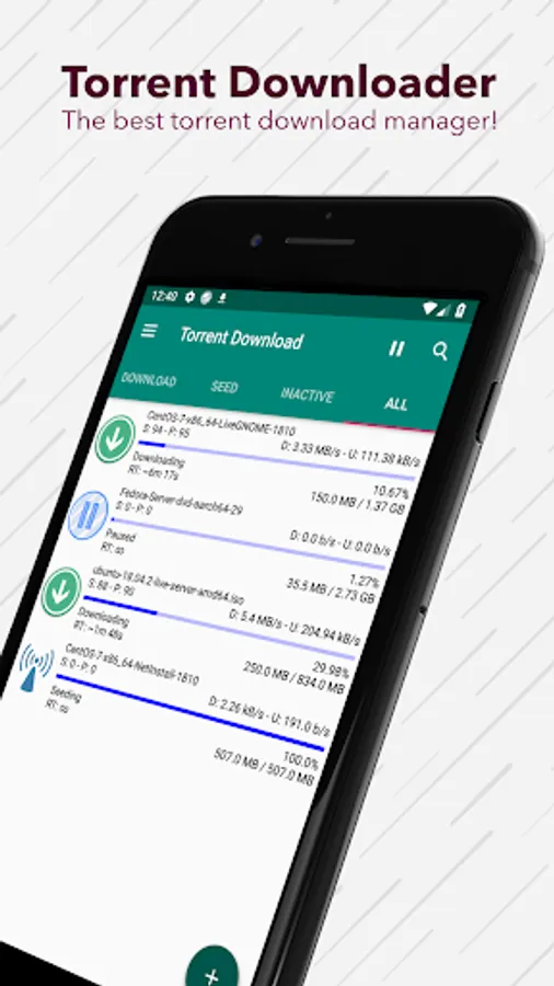 This app is designed to be used in a simple and immediate way, just import a torrent file or paste a magnet link and the download will immediately start. With only one app you can download all the files you need from Internet!