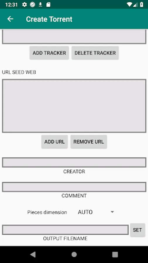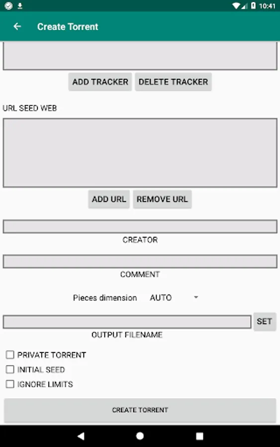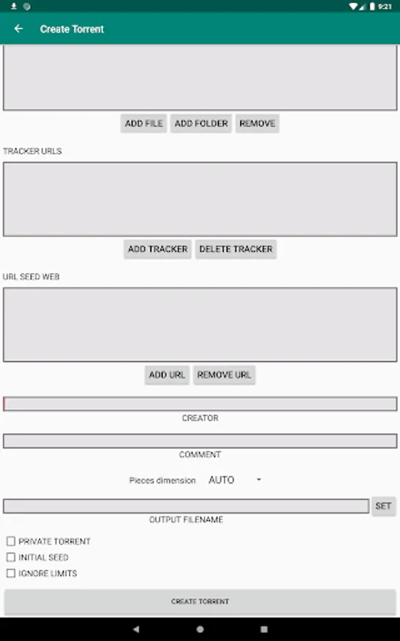 - create and make custom torrents from a file or a folder on the device;