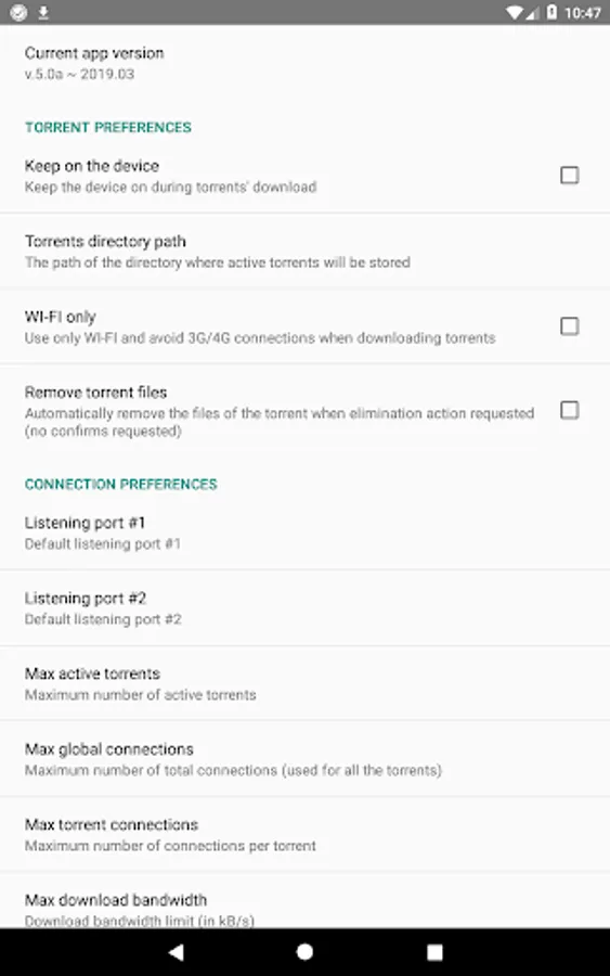 Use the application only for lawful purposes. The developer is not responsible for incorrect uses of this application. Please, before starting using Torrent Downloader for Android read and understand its EULA to avoid misunderstandings.