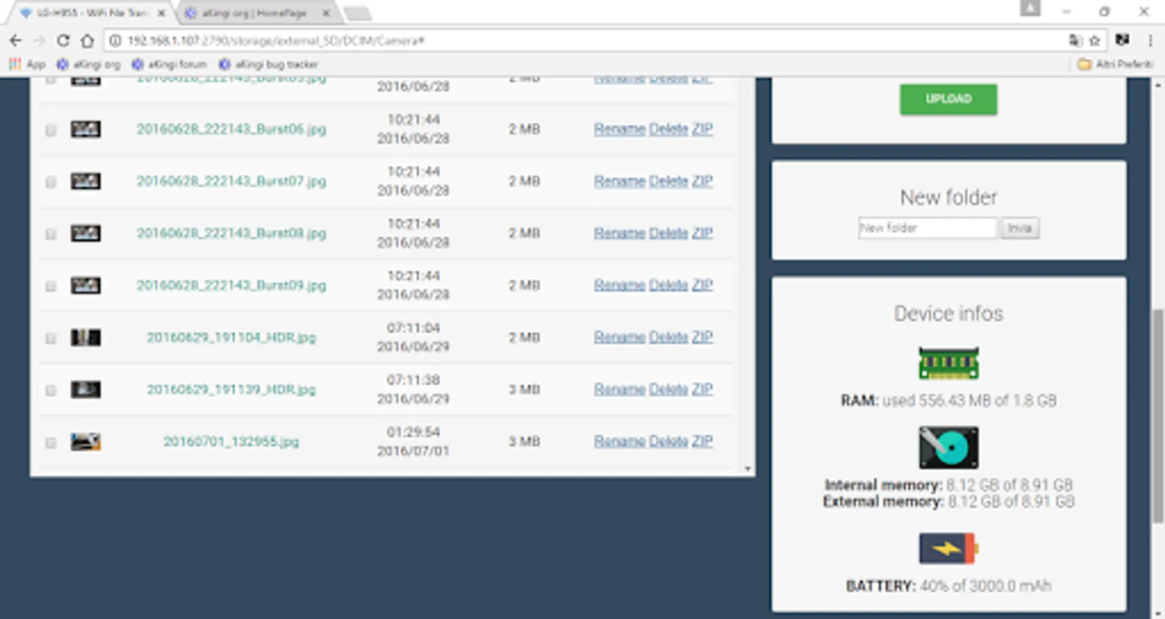 - upload files/folders from your browser to your smartphone;