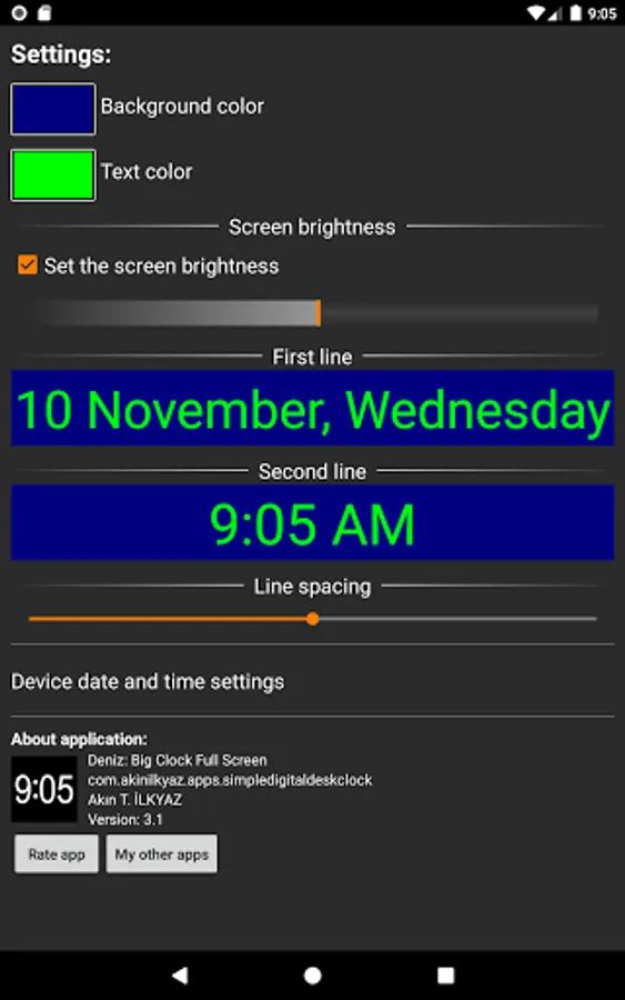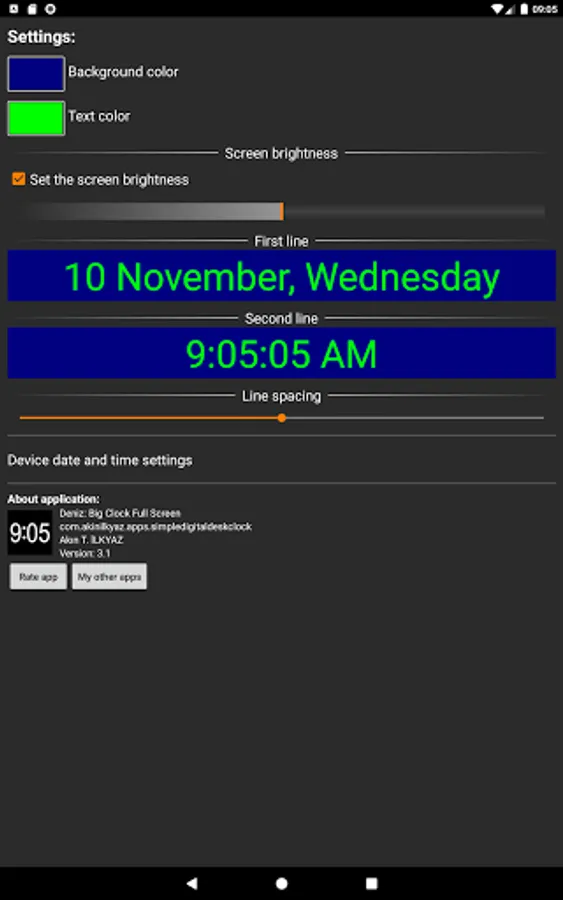 The application is very easy to use, just download and run. Your phone or tablet turns into a full screen clock.