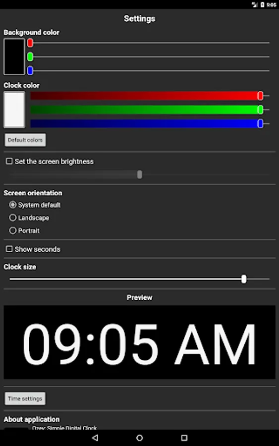 The program is very simple usage, just download and run. Your phone or tablet will be transformed into a full-screen clock.
