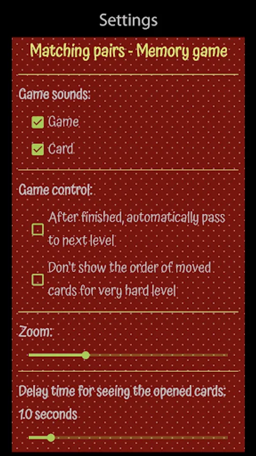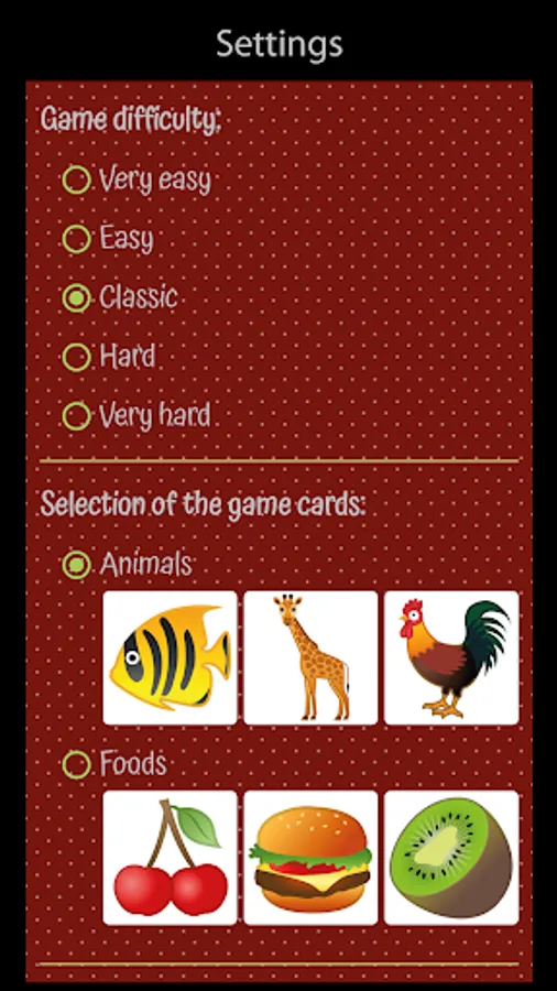 - It is an adaptation of matching pairs game that can be played in very simple, simple, classic, hard, and very hard levels.
