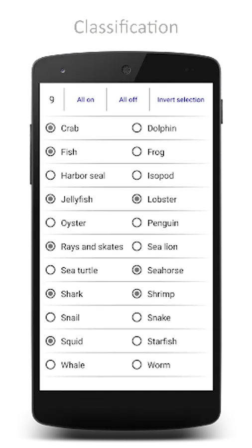 Classifying: When it's found an object the Observer classified it as; fish, shark, squid, jellyfish, lobster, shrimp, crab ...