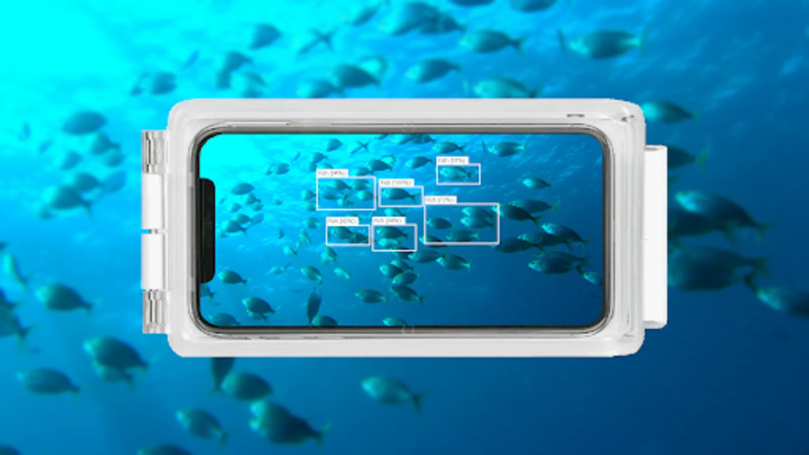 Marking: When it finds an aquatic animal it marks by bounding box, writes classification label and confidence percentage.