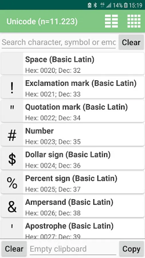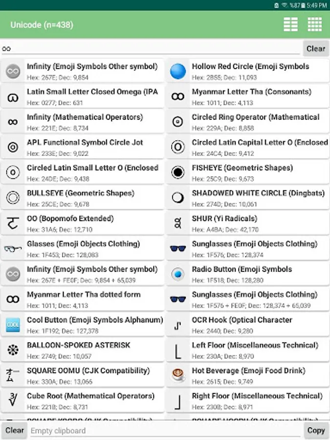 - Easily search between unicodes,