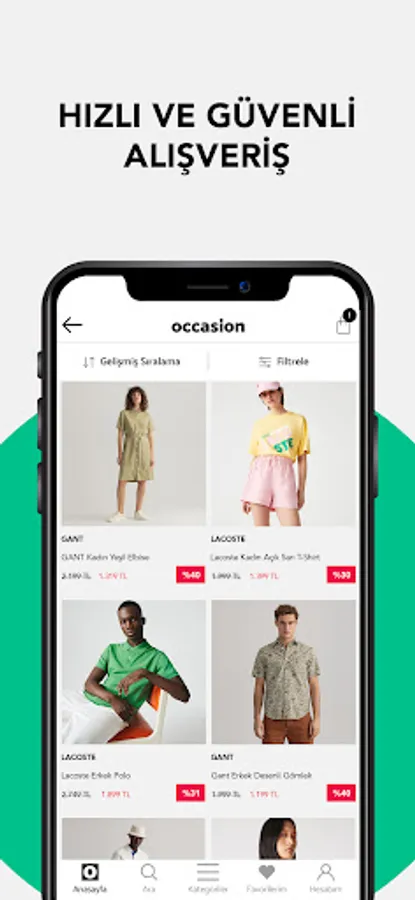In the Occasion app, you can find everything you need with reasonable price advantages. With Lacoste shoes, Lacoste polo collar t-shirts, you can reach all products of your favorite brands from clothing to shoes.