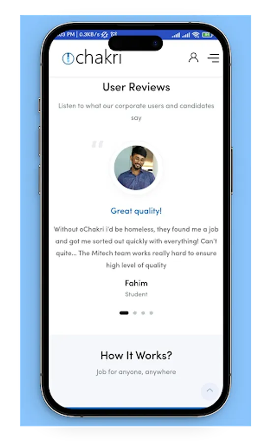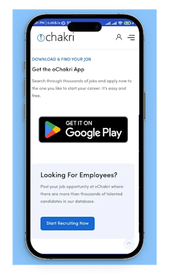 oChakri is a app that deals specifically with employment or careers. oChakri designed to allow employers to post job requirements for a position to be filled and are commonly known as job boards. This app also offer employer reviews, career and job-search advice, and describe different job descriptions or employers. Through this app a prospective employee can locate and fill out a job application or submit resumes over the Internet for the advertised position.