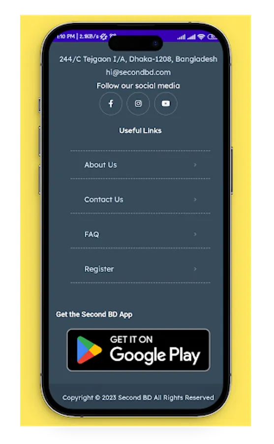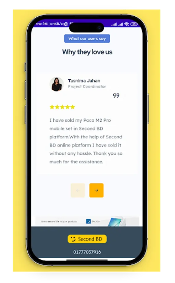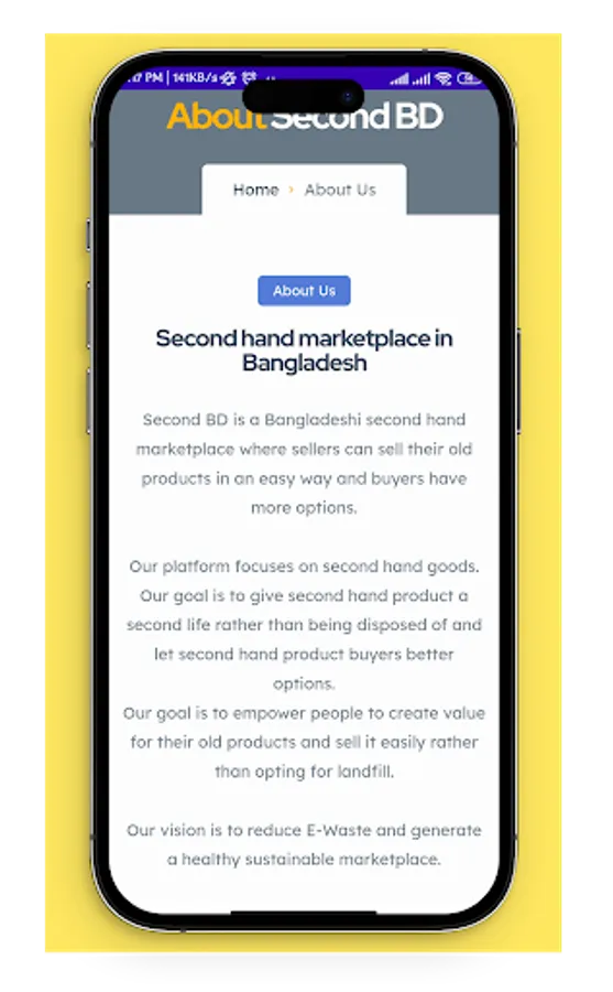 Second BD is a Bangladeshi second hand marketplace where sellers can sell their old products in an easy way and buyers have more options. Our platform focuses on second hand goods. Our goal is to give second hand product a second life rather than being disposed of and let second hand product buyers better options. Our goal is to empower people to create value for their old products and sell it easily rather than opting for landfill. Our vision is to reduce E-Waste and generate a healthy sustainable marketplace.