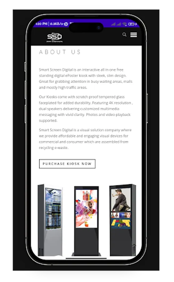 Our Kiosks come with scratch proof tempered glass faceplated for added durability. Featuring 4K resolution, dual speakers deliver customized multimedia messaging with vivid clarity. Photos and video playback supported. Smart Screen Digital is a visual solution company where we provide affordable and engaging visual devices for commercial and consumer which are assembled from recycling e-waste.