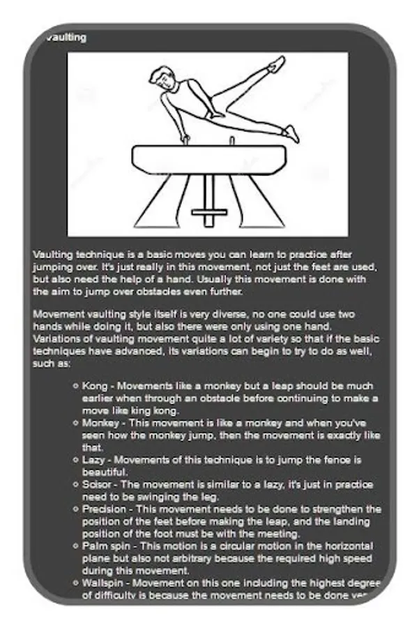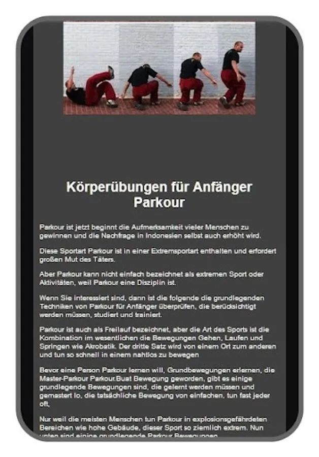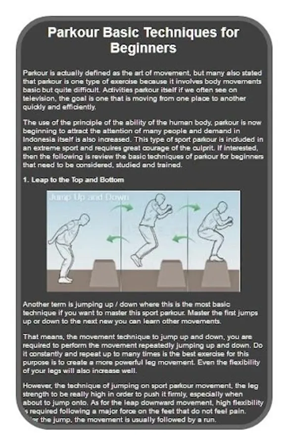 Parkour is a sport that truly challenges challenges. Just imagine, in this sport, parkour must hang and pass between tall buildings with their bare hands. Therefore you can imagine so many risks that must be prepared to be taken for if you really want to become a true parkour. In addition, drugs and tools for anticipating injuries you must prepare before doing parkour exercise. Hopefully this application can be an appropriate reference for how to become the parkaur sport you dream of.