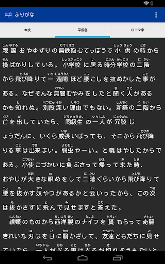 Tags: furigana romaji hiragana katakana japanese kanji reading aid notation 漢字 かんじ ふりがな 振り仮名 ロマ字 振假名 平假名 片假名 羅馬字