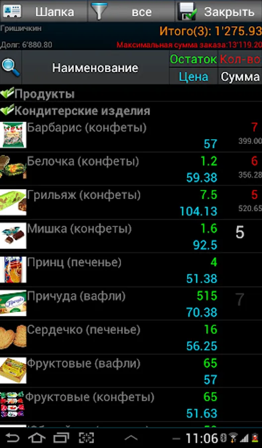 Quick access while working on your mobile route sales representative to all relevant information for each client: accounts receivable, current balances of goods in stock, commodity price, sales history, the amount of the order made, limits. Unloading the application to the office for one minute!