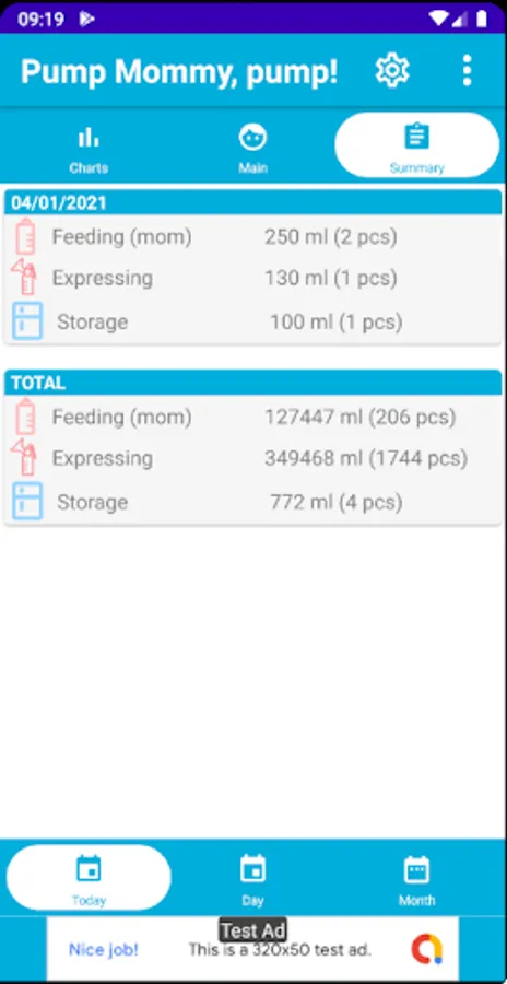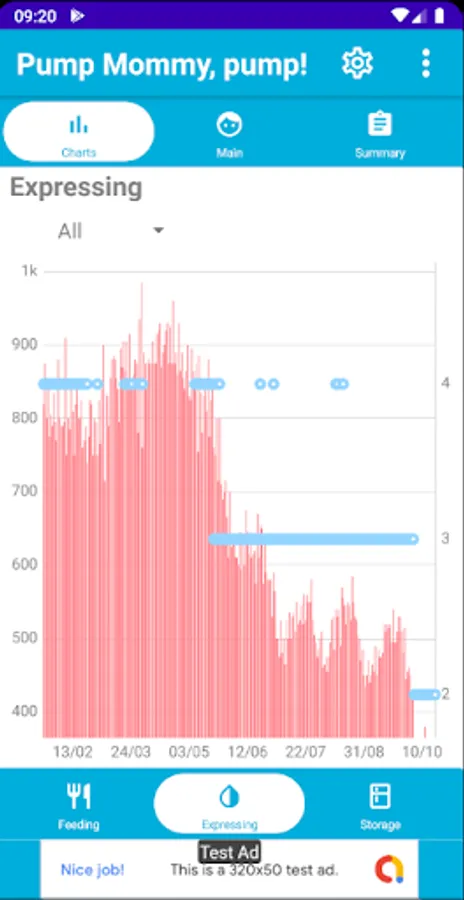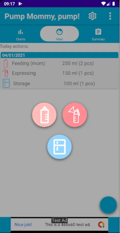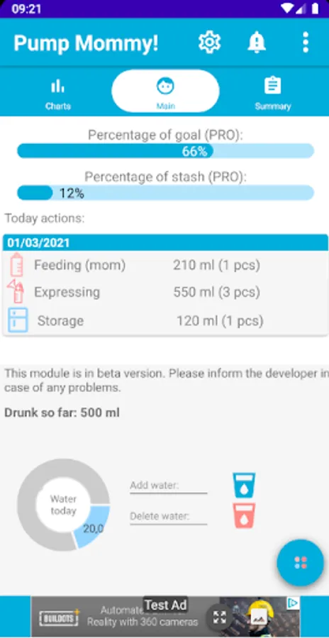 2. daily charts for each type of log (pumping, stash and feeding),