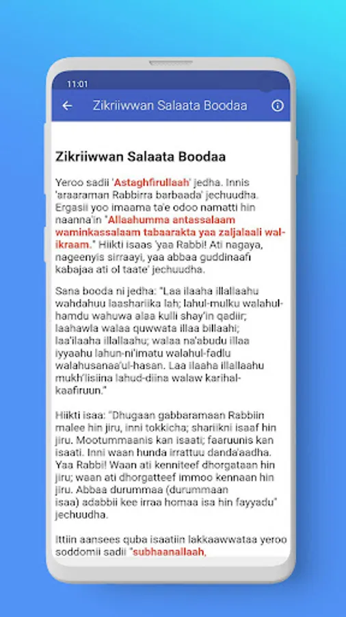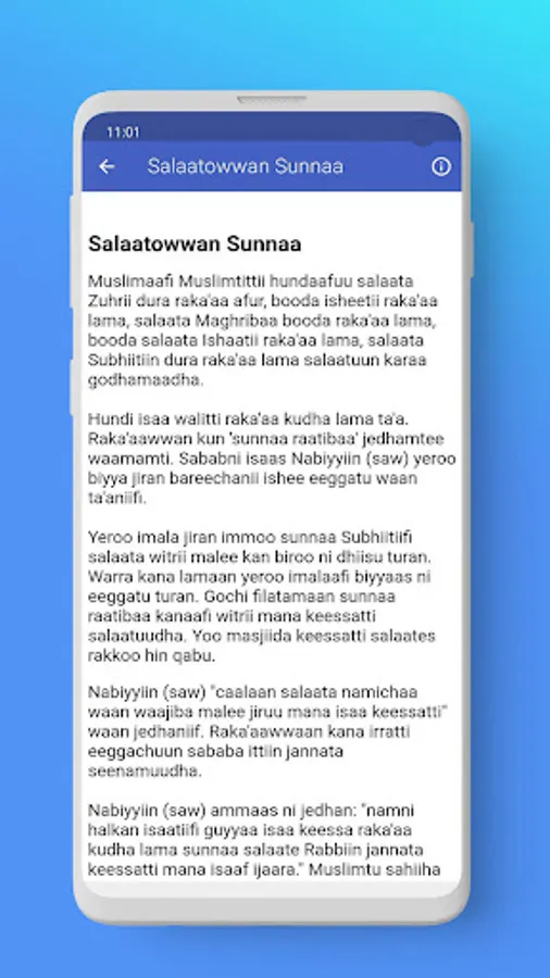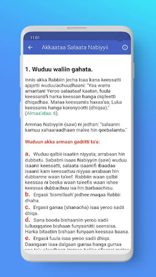 Akkaataa Salaata Nibiyyichaa sirna Wuduu'aa waliin qophaaye. Barumsa gabaabduu sirna salaata Ergamaa Rabbii (saw) ibsuudhaaf qophaayedha. Gara Muslimaafi Muslimtittii hundaatti dhiheessuun fedhe.