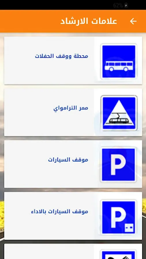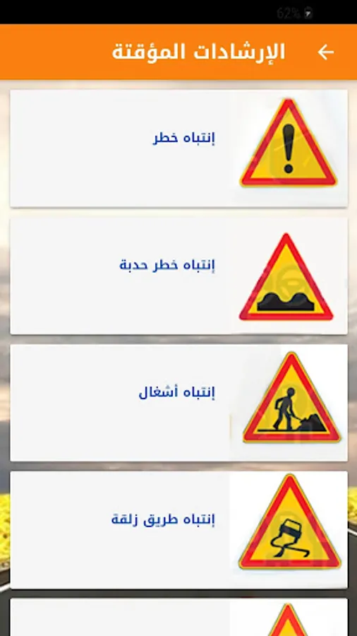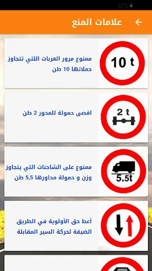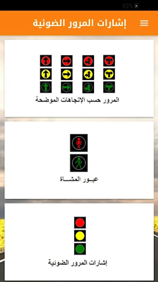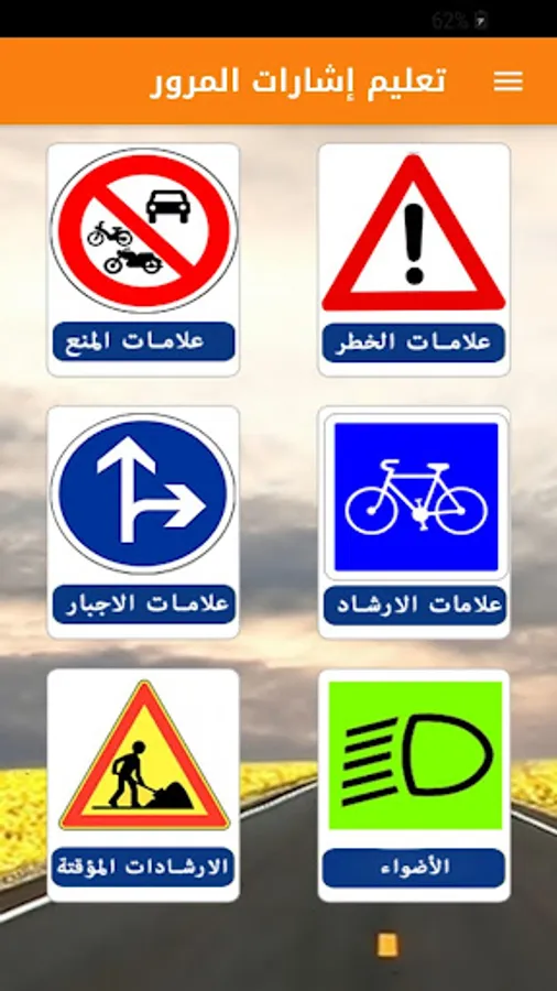 The application of traffic lights deals with traffic lights of various types where it provides the possibility of reviewing traffic lights for each type of signs of prevention, signs of coercion, signs of coercion, danger signs, lights, temporary guidance