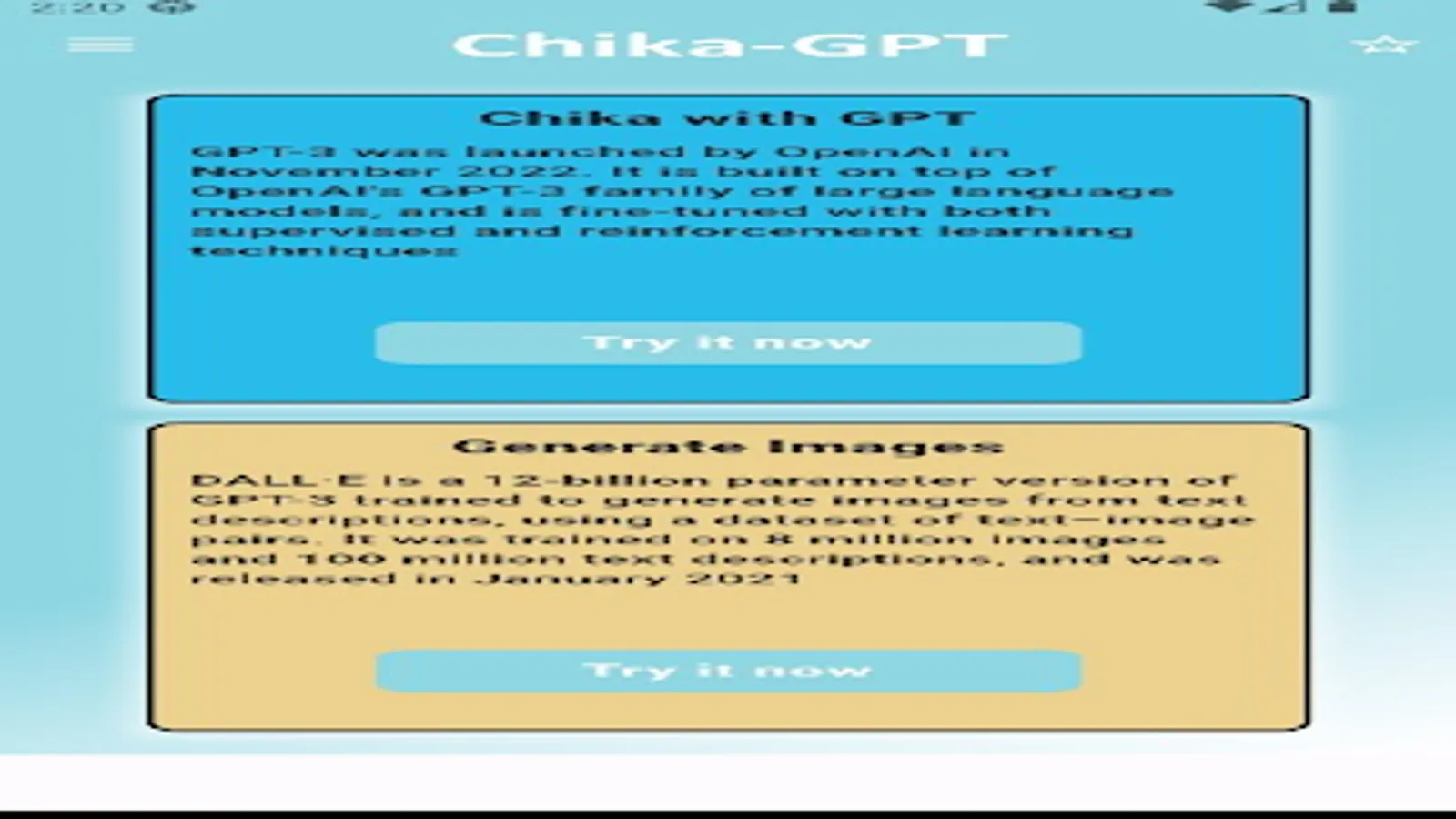 Chika utilizes OpenAI API both for Chat-gpt and Dalle-3.