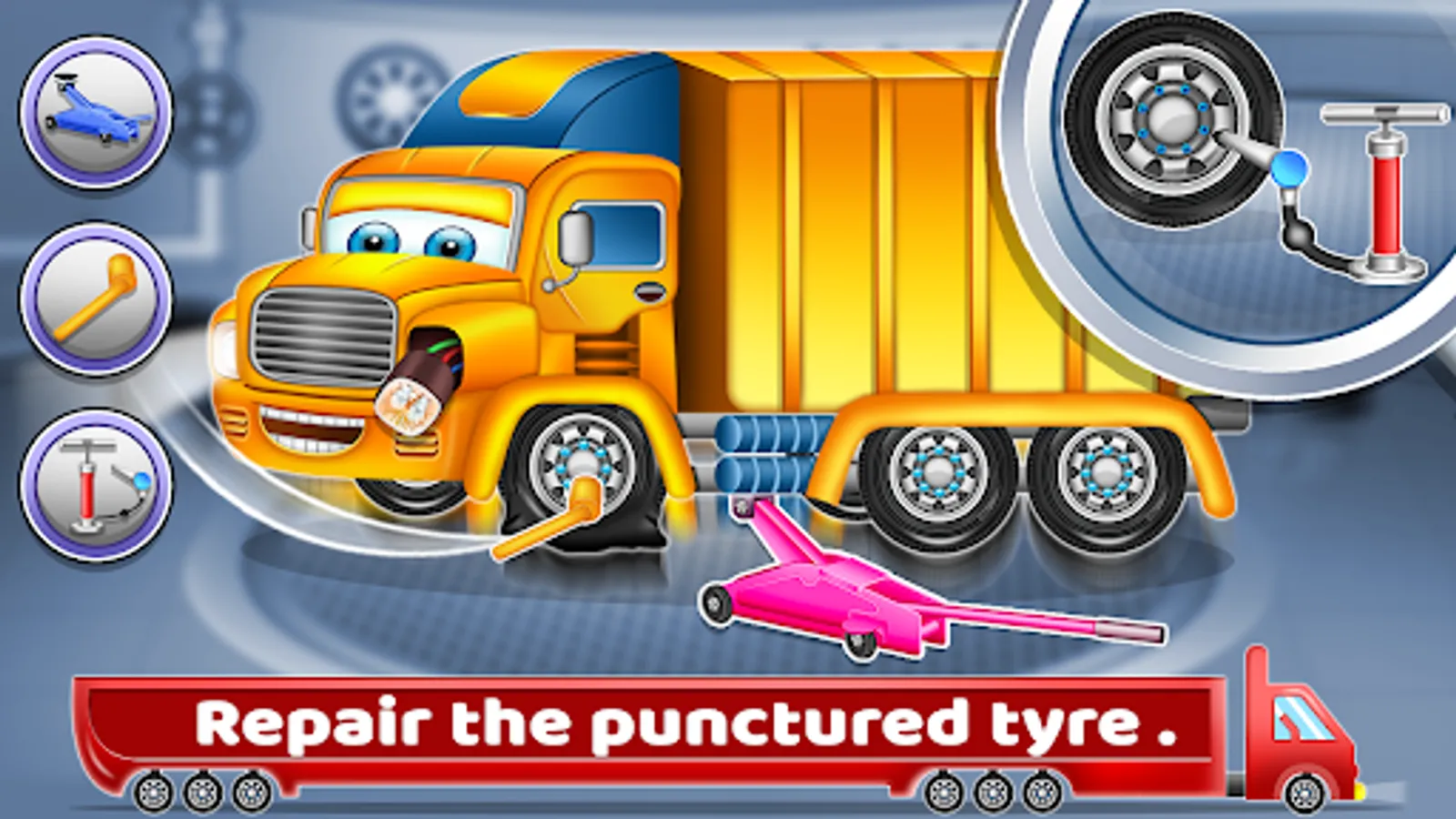 Learning about car wash, repair, part change, engine and much more in this game. You will also learn about truck