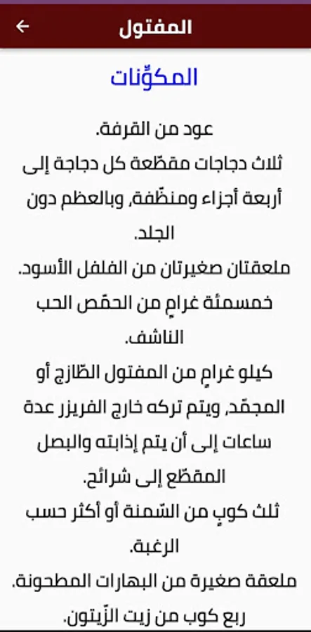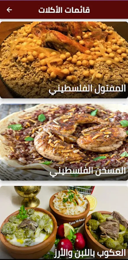 Method of preparation and ingredients of popular dishes in the application of Palestinian popular dishes.