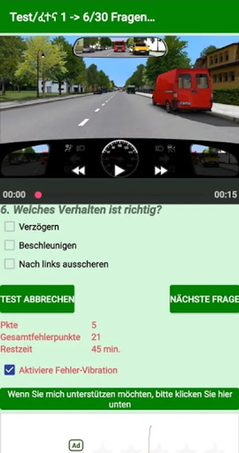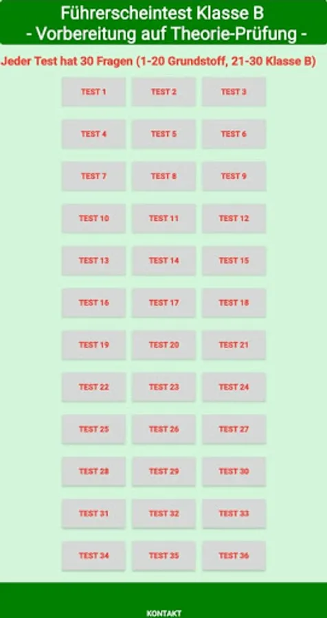 You can download this free class B driver's license test app for android. With this app you can prepare for the theoretical driving test on the go or at home on your Android smartphone. The app currently contains a total of 1080 questions (36 tests, each with 1-20 basic material and 21-30 class B questions) from the current official catalog of questions from TÜV and DEKRA for vehicle class B. You can also use the app to learn German at the same time .