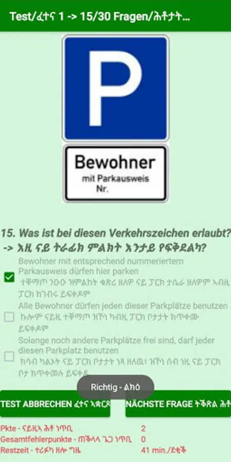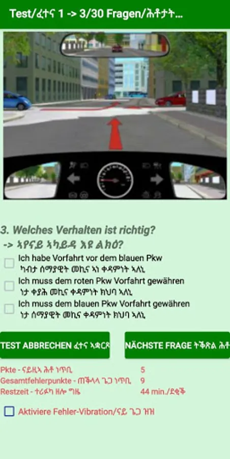 Driving license class B German Tigrinya - ፈተና መምርሒ መኪና ክላሰ በ ፡ ዶች ትግርኛ