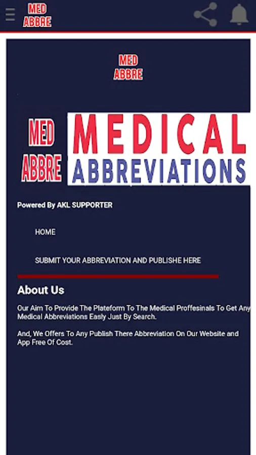 Our Aim To Provide The Plateform To The Medical Proffesinals To Get Any Medical Abbreviations Easly Just By Search.