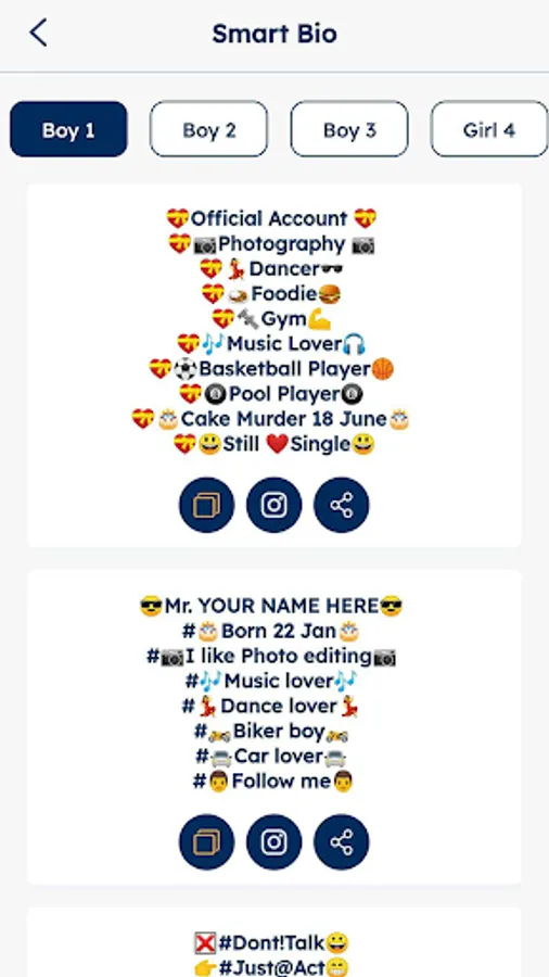 Smart Travel Bio π€³ π· Are you thinking about how to make attractive your Social Media profile? The Smart Bio application help to make your profile look attractive. People always say "First impression is the last impression". Best Bio will make someone decide whether they should follow you or not. It doesnβt matter if you have smart ever pictures in your account but if your bio is not good then your profile visitor might only check your pictures and go back. To travel boast route history, inspire you to explore the earth