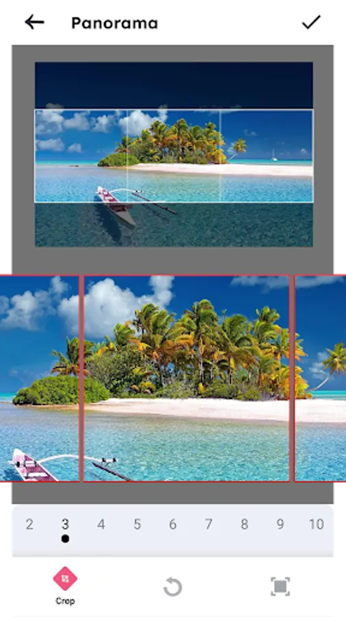 Rediscover your panoramas with a swipe. You got your crop & square photo for Instagram, Facebook, WhatsApp, etc.