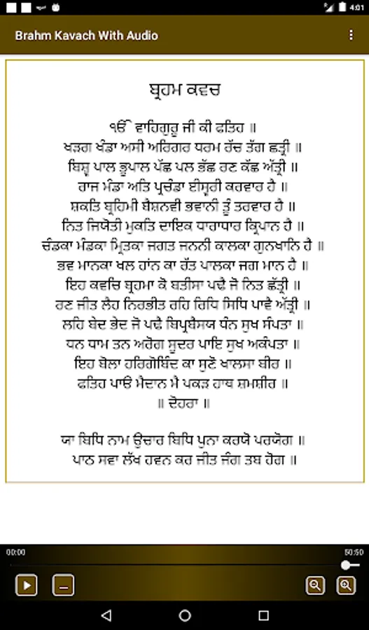 Brahm Kavach was written by Sri Guru Hargobind Sahib Ji. Brahm Kavach bani also provides protection.This app connect new generation with Sikhism.