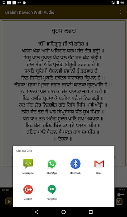 FEATURES :- READ & LISTEN PATH WITH SIMPLE AUDIO PLAYER, THREE LANGUAGES GURMUKHI(PUNJABI), HINDI AND ENGLISH, BRAHM KAVACH WITH AUDIO APP IS FREE FOR DOWNLOAD, VERTICAL AND HORIZONTAL CONTINUOUS MODE, LIGHT AND FAST, BEAUTIFUL ENTERFACE, VERY EASY TO BE USE, ZOOM IN OR OUT WHILE READING, DOWNLOAD OUR OTHER APPS