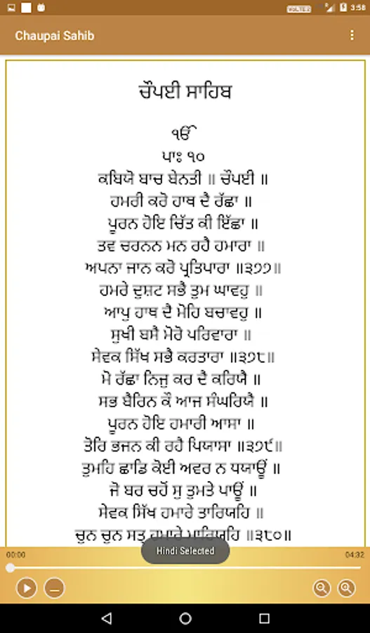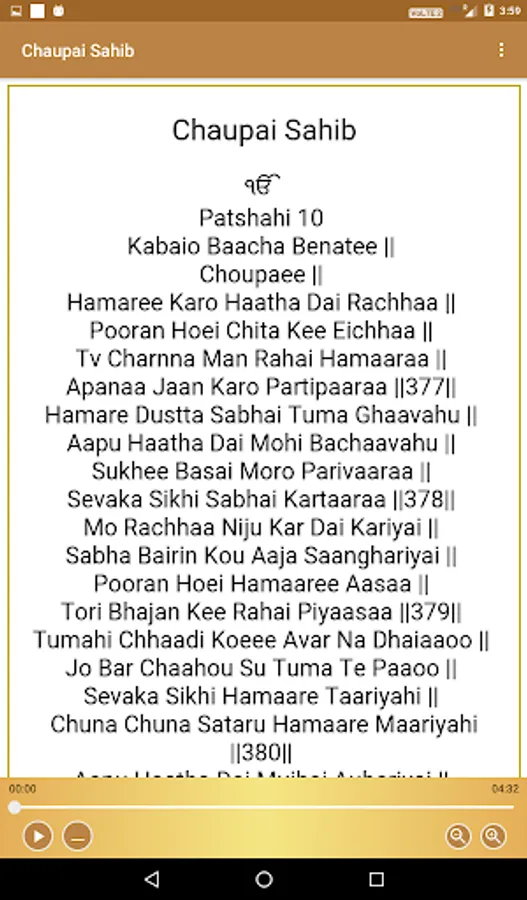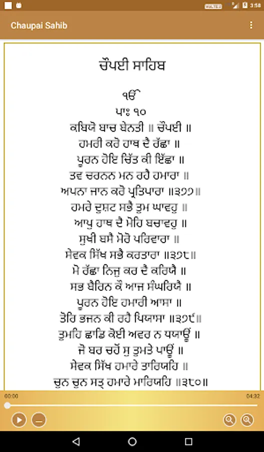 Chaupai Sahib is a bani of Sri Dasam Granth. By using this Bani we can build our inner strength. This Bani gives one the feeling of dependability and reliability on the Lord. The Chaupai Sahib is third bani of Nitnem path.