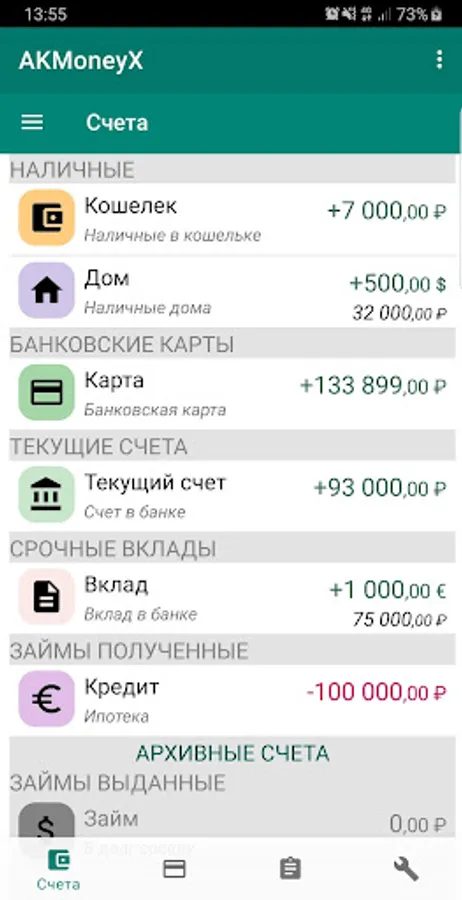 2. Easy management of accounts, savings, savings and loans. Create, edit, archive.
