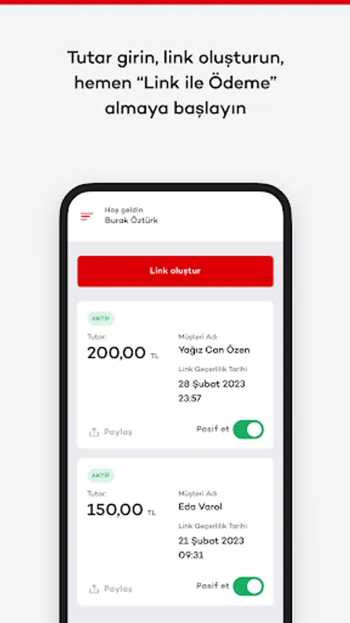 With AKÖde Pay with Link service, you can receive remote payments with a single link you create, without the need for a website or integration. You can share the link you created with your customer via any social media account and receive your payment instantly, quickly and securely.